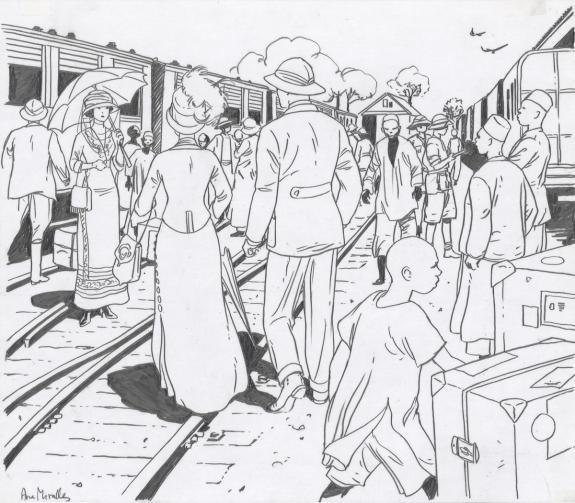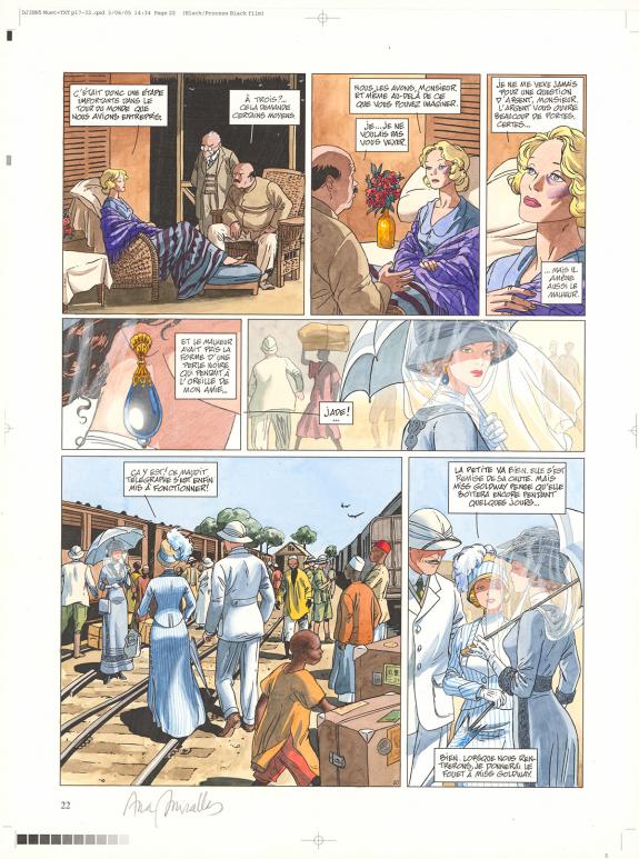 > Catalogue > Ana Miralles > Djinn > Africa > Planche originale n°22, acompagnée de ses étapes préparatoires