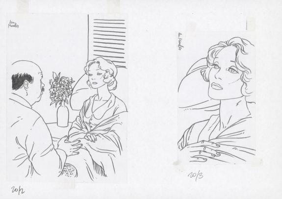 Planche originale n°22, acompagnée de ses étapes préparatoires