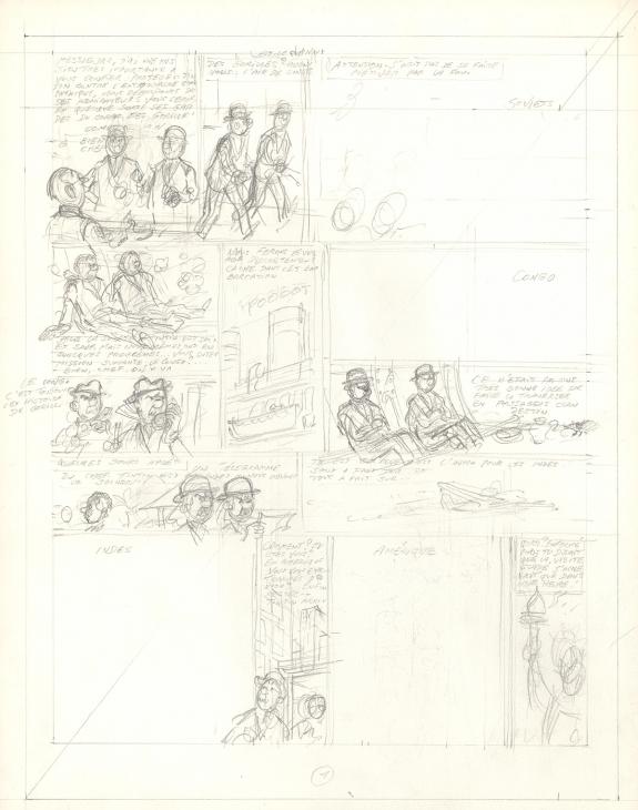 > Catalogue > Bob De Moor > Tintin > Album sans titre > "Les Gorilles de la vedette", crayonné original pour parue dans "Tintin Super Stars" en 1985