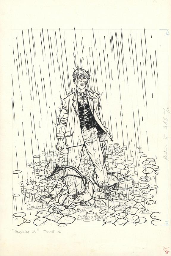 > Catalogue > Eric Stalner > Fabien M > Le Cavalier noir > Couverture originale accompagnée de sa mise en couleur