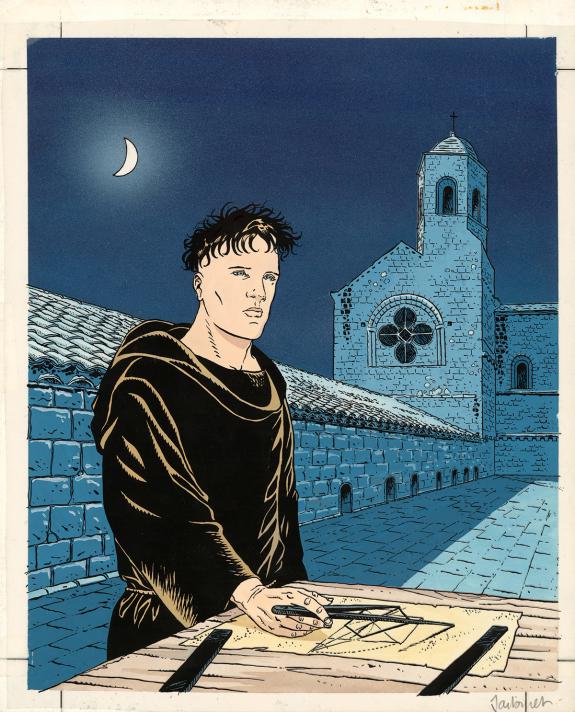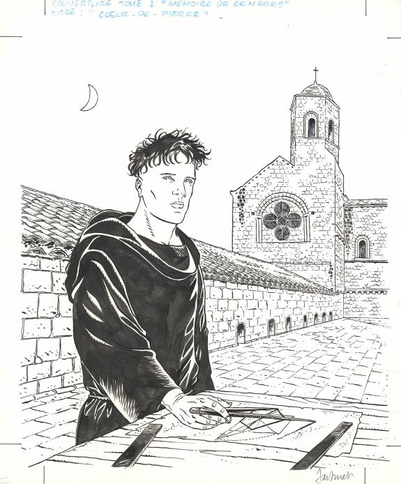 > Catalogue > Philippe Jarbinet > Mémoires de Cendres > Coeur de pierre > Illustration originale accompagée de son bleu de mise en couleur, couverture de l'album
