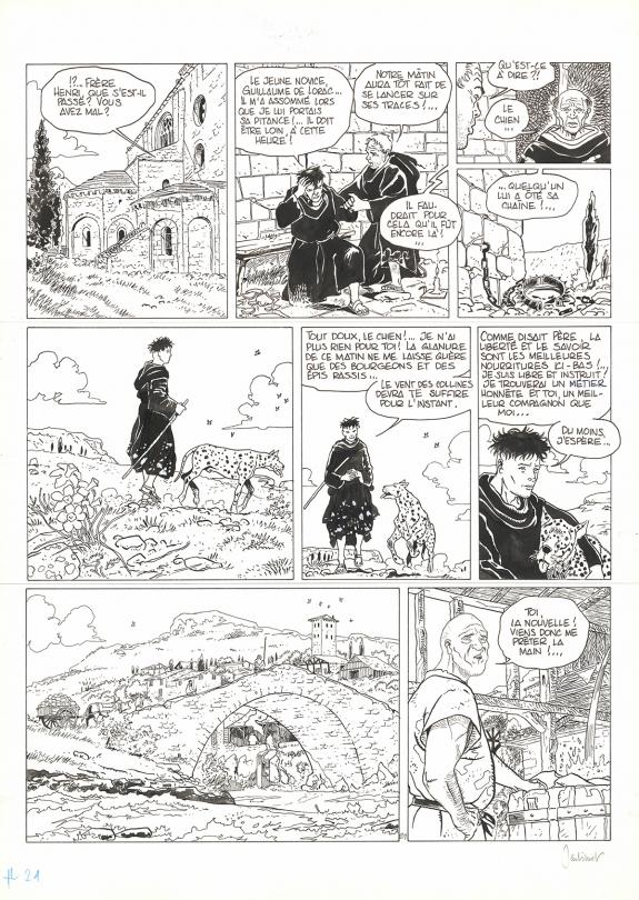 > Catalogue > Philippe Jarbinet > Mémoires de Cendres > Coeur de pierre > Planche originale n°21 accompagnée de son bleu de mise en couleurs