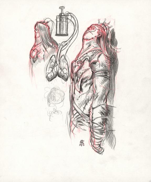 • Stan Manoukian - Frankenstein, Crayonné original, recherche