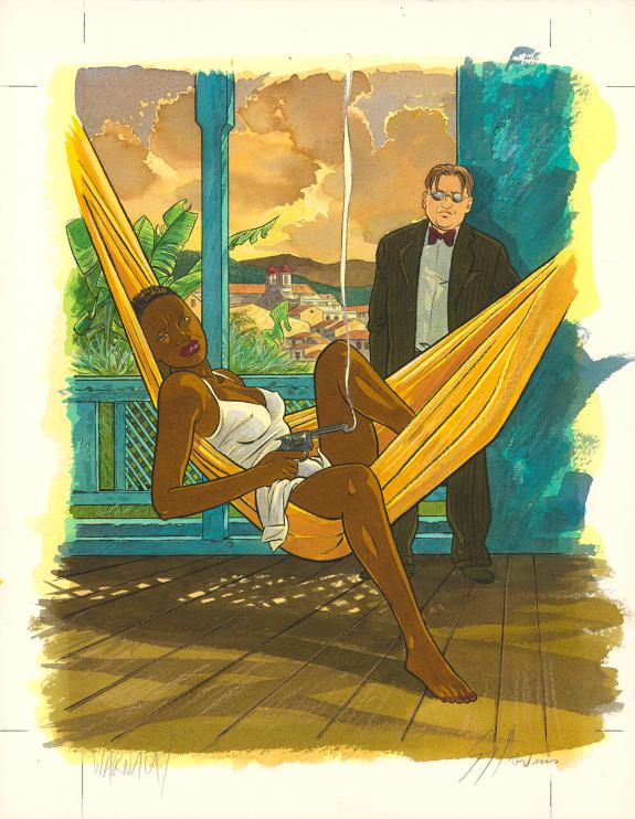 > Catalogue > Warnauts et Raives > L'Orfèvre > La Mort comme un piment > Couverture originale du mensuel Vécu, accompagnée de sa mise en couleurs